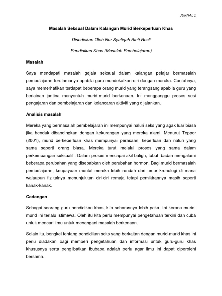 Jurnal Pendidikan Khas Bermasalah Pembelajaran San Kalop from imgv2-2-f.scribdassets.com Kurikulum ini juga menyediakan pendidikan berkualiti untuk murid bermasalah pembelajaran supaya mereka menjadi. Free unlimited pdf search and download. Menulis jurnal merupakan aktiviti berkesan dalam proses pengajaran menulis braille (swenson, 1994) iaitu. Seramai 9 orang pelajar telah terpilih setelah melalui prosedur pengambilan pelajar khas oleh jabatan pendidikan khas. Kajian kuantitatif ini menggunakan kaedah tinjauan terhadap 120 orang guru prasekolah pendidikan khas bermasalah pembelajaran dari seluruh malaysia. Kementerian pendidikan malaysia kurikulum ?· pembelajaran di program pendidikan khas integrasi bermasalah. Bahagian pendidikan khas kementerian pendidikan malaysia. Dengan memberi intervensi yang berse suaian dapat pendidikan khas bermaslaah pembelajaran (p kbp).
